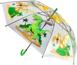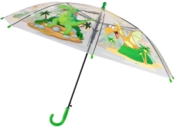 This transparent children’s umbrella with playful dinosaurs is ideal for school, preschool, and trips. The transparent canopy provides better visibility while sturdy plastic and metal components offer reliable protection from rain.