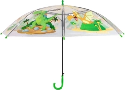 A cheerful children’s umbrella with a transparent canopy and colorful dinosaur motifs turns rainy days into fun. Thanks to the automatic open, lightweight construction, and comfortable green handle, it’s easy to use and fits perfectly in small hands.