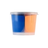 The practical divided cup lets you have two bold colors ready for shaping and mixing—tidy and organized.