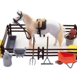 The paddock and accessories expand play possibilities—from feeding to letting the horse rest in a safe space.