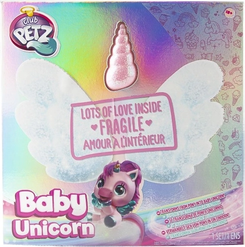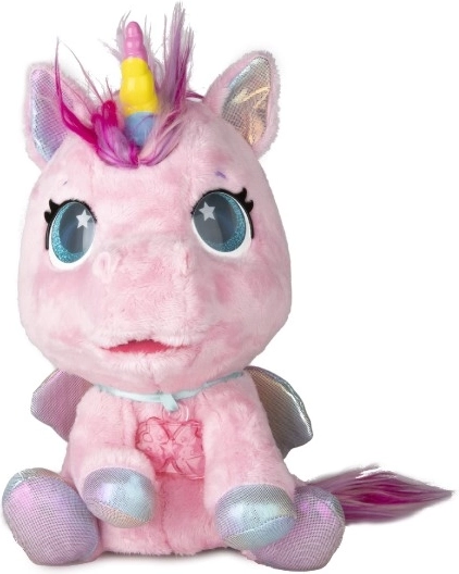 Discover the magic with a plush friend who turns into a unicorn thanks to your care! This adorable pet offers 30+ sounds and interactions, a magical growth of a colorful horn in 3 stages, and comes with 9 accessories for creative play. Pet, brush, feed, and complete the transformation by attaching the rainbow wings and the pendant.
