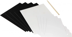 4 x paper sheets, 1 x scratching pen, 1 x template, 4 x stands