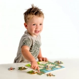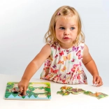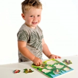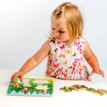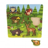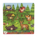 Forest motifs like an owl, squirrel, wild boar, and deer inspire discovery in a playful way. The wooden base with framed outlines keeps each piece in place and makes it easy to match by both shape and picture.