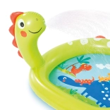 A cheerful inflatable pool with a fountain and dinosaur design, ideal for summer fun in the garden. The pool is made from quality PVC material with dimensions of 119 x 109 x 66 cm.
