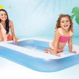 Enjoy hot days with the INTEX inflatable kids' pool that brings plenty of fun and cooling right to your garden. Thanks to the soft, padded bottom and wide walls, it offers comfort even during longer sitting and protects kids while they splash around.