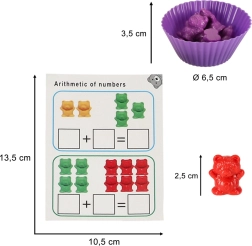 A fun educational set with adorable bears helps children develop counting, color sorting, and fine motor skills. Includes 36 bears in 6 colors, silicone cups, wooden dice, activity cards, and tweezers. Ideal for the Montessori method, at-home and preschool learning, and playful math.