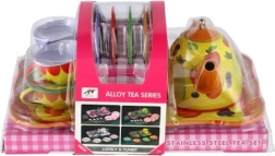 Host a magical tea party! This high-quality children's metal tea set includes 14 pieces of tableware for serving and role play. Thanks to its durable tin construction, colorful patterns, and practical tray, it's ideal for group play for children aged 3 and up. Note: this is not tableware for actual use with beverages.