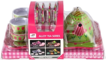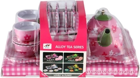 The box includes everything needed for a little tea party—teapot, cups with saucers, and plates. The set is great for developing social skills, learning table manners, and playing together with friends. The tableware is not intended for actual preparation or consumption of beverages.
