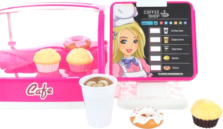 Discover the joy of play with our battery-powered children's café, ideal for little baristas. This play set includes everything you need: a coffee machine, refrigerator with cakes, and a cash register.