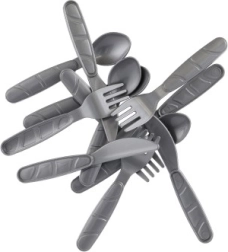 The set of plates with cutlery teaches kids dining basics and supports independence as well as fine motor skills.