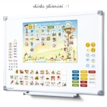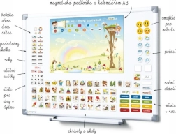 The magnetic calendar has a magnetic board measuring 420 x 297 mm, which you can easily attach to a fridge or another metal surface. The set includes 114 magnets that offer your children creativity and fun: