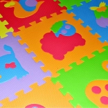 Fun and safe foam animal puzzle for children from 3 years. The soft, washable mat reduces noise, insulates from cold, and thanks to its textured surface it doesn’t slip. Ideal as a play rug for the kids’ room.