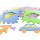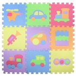 This set of colorful foam puzzles offers children not only a comfortable and safe mat, but also a fun way to learn. The removable shapes (vehicles and other objects) support fine motor skills, shape and color recognition, and the development of imagination while assembling.