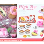 The tea set with tin tableware is a perfect choice for children’s play and for developing creativity during parties and get-togethers. The package includes a teapot, a tray, two cups, two saucers, two plates, and two teaspoons. As a bonus, there is a plastic three-tier dessert stand and little cakes to bring every tea party to life.