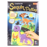 This set contains everything needed to create a fascinating picture: a template with dinosaur motifs, sequin accessories, and a pin for easy application. The creation process is simple and ensures that even the youngest can create a beautiful artwork. Children can follow the illustrated step-by-step guide, or use their own imagination to apply the sequins to the picture. A creative activity that develops fine motor skills and aesthetic sense.