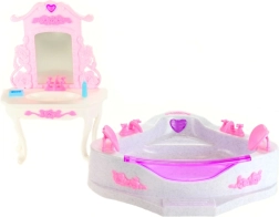 The stylish GLORIA bathroom set transforms any dollhouse into a realistic bathroom. It includes a corner bathtub, a sink with mirror, and is ideal for creating everyday doll-care scenes. With dimensions suitable for most dolls and quality craftsmanship, it encourages imagination, creativity, and social skills in children. Doll not included.