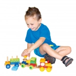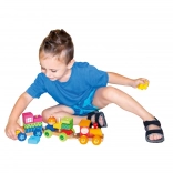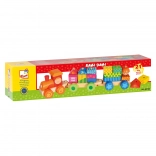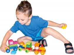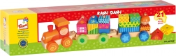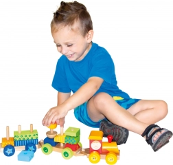 This multifunctional wooden train is not just a pull-along toy but also a building set that allows children to develop their creativity. The train includes three chassis and 18 different blocks that can be arranged according to imagination.