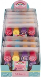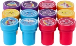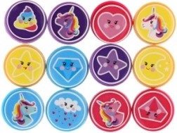Colorful 12-piece set for joyful crafting: self-inking stamps with cute unicorn motifs and other shapes. 12 designs, 4 colors, 3 cm diameter, and a handy 12 × 9 × 4 cm box. Great for kids aged 3+ for creative play, rewards, and decorating notebooks.