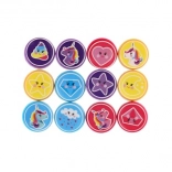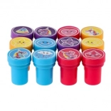 The set offers a cheerful variety of cute designs (unicorns, stars, hearts, clouds, etc.) in 4 bright colors. The stamps have a compact 3 cm size, fit comfortably in small hands, and help develop fine motor skills and imagination.