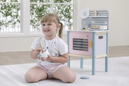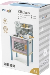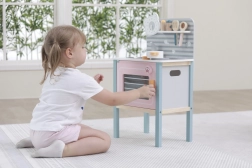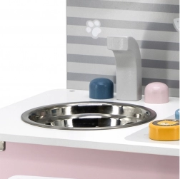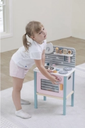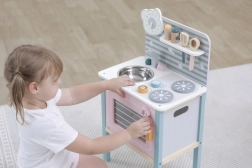 The kitchen is designed for safe play for children from three years old, supporting the development of fine motor skills and imitation.