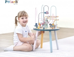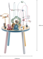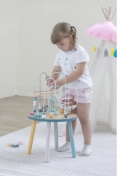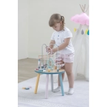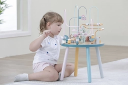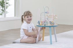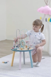 The bead maze on the sturdy wooden table invites children to explore. Colorful shapes and cute animals (bear, fox, hedgehog) motivate finger movement, precise grasping, and creating their own stories. An ideal choice for home 'Montessori' style learning through play that develops patience, focus, and imagination.