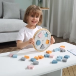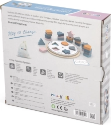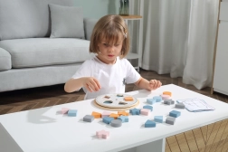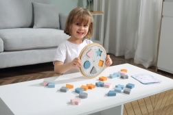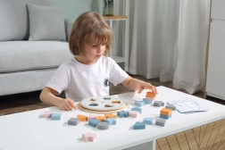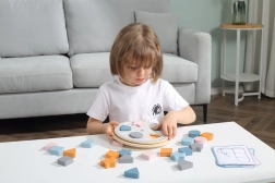Discover a fun and educational game that helps children naturally master shape and color recognition. The rotating board lets you change color patterns, keeping the game always engaging and versatile. The template cards guide children step by step and develop their logic, concentration, and hand–eye coordination.