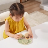 Turning, sliding, and grasping wooden pieces trains little fingers and hand-eye coordination from 12 months.