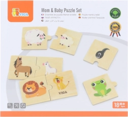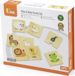 VIGA Wooden Puzzle: Mom and Baby – Animal Pairs