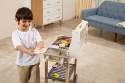 The VIGA kids’ grill delivers an authentic grilling experience in a safe, high-quality, and stable wooden build. Kids can prepare skewers, burgers, hot dogs, or sandwiches and serve “guests” like at a real garden party. Rotating buttons with a clicking effect, a removable lid, and a sliding grate support realistic play and skill development.