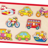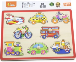 The puzzle supports vocabulary building, as well as learning colors and shapes, while teaching children to recognize common vehicles. Smooth edges and safe workmanship are ideal for small hands. Practical packaging (approx. 30 × 27 × 1 cm) makes storage and transport easy.