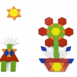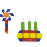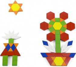 A large number of flat wooden blocks in different shapes and colors boosts imagination and spatial reasoning. Children can arrange patterns, animals, and entire pictures.