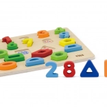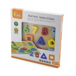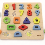 The Wooden Insert Puzzle VIGA – Numbers and Shapes is a great way to introduce children to their first numerals and basic geometric shapes. Thanks to bright colors and solid wooden workmanship, children practice hand–eye coordination, distinguishing shapes and colors, and logical thinking. Each piece has its place, which encourages patience and concentration.