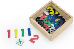This set of magnetic numbers made of wood and plastic in a sturdy wooden box supports fine motor skills, logical thinking, and first steps in mathematics. Thanks to the vibrant colors and pleasantly rounded shapes, children easily assemble numbers and basic arithmetic operations.