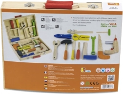 This high-quality wooden tool set from VIGA gives children a realistic experience of working with tools. Colorful, durable pieces like a drill, hammer, screwdriver, wrench, and saw spark imagination and offer a safe way to develop dexterity and hand–eye coordination.