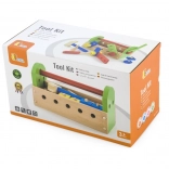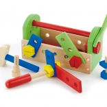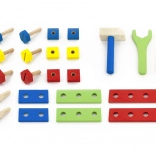 A fun and safe wooden tool set for little DIYers aged 3+ in a practical carrier. Includes a screwdriver, hammer, wrench and colorful screws, nuts, and plates for screwing. Supports fine motor skills, coordination, and imagination thanks to quality wooden construction.