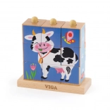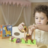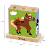 Discover a quality wooden cube puzzle that both entertains and develops children. The base and pegs are made of high-quality solid beech wood; the blocks slide easily onto the pegs and, thanks to their tilting, turning while assembling the pictures is smooth and comfortable.