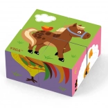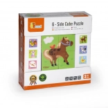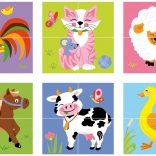 Four wooden cubes let you assemble up to six different farm animal scenes — vivid colors and clear shapes instantly engage kids.