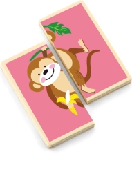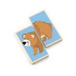 This set includes wooden animal pieces that pair together to form simple matches. Through playful activities, children practice hand–eye coordination, concentration, and visual perception. The pieces are large enough for small hands and have smooth, safe edges.