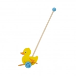 Wooden push duck on a stick is a simple yet effective toy that every child loves. It's a classic toy offering many benefits. The cute yellow duckling moves its legs energetically when in motion, motivating children to take walks. This toy is packed in an aesthetic box with a window allowing visibility of the duckling. Inside is a stick with a handle that perfectly fits a child's small hand. The stick is not permanently attached, making it easy to store. The entire toy is made from beech wood and painted with non-toxic colors in vibrant hues that attract attention and encourage play, bringing a lot of joy during playtime.