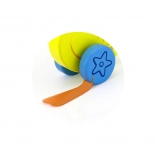 The toy stimulates children's imagination and creativity through colorful elements and interactive parts.