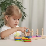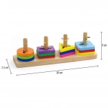 The wooden geometric sorting stacking set Viga provides children with fun while learning key skills. It consists of five pegs on which children place appropriate shapes, with the challenge being to correctly match shapes to corresponding posts. Bright colors attract and stimulate the senses of young children.