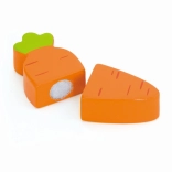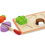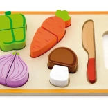 With this wooden set for cutting vegetables, children can mimic cooking in their own kitchen. It includes a variety of wooden vegetable pieces, a cutting board, and a knife, allowing for safe and fun cutting. Suitable for children from 18 months, this set supports the development of motor skills.