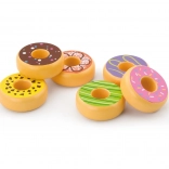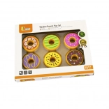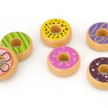 With this colorful donut set, children develop sensory perception, hand–eye coordination, and creative play. The durable wooden design with smooth edges is ideal for little hands and withstands everyday play.
