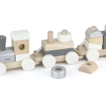 The train consists of removable pieces and rolling chassis, so little builders can enjoy both building and driving the train. It makes a great gift that delights while supporting early childhood development.