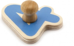 Each piece has a wooden knob for an easy grip. As they fit the pieces, children practice fine motor skills and hand–eye coordination.