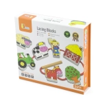 The blocks feature various farm shapes like animals, tractor, barn, and more, encouraging creative play and storytelling.