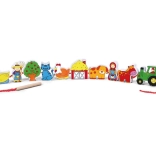 VIGA Wooden Threading Farmer Blocks are designed to captivate any child. This set contains 12 colorful blocks with farm motifs that your child can thread together using the included lace. Different shapes are available, such as cow, duck, cat, hen, dog, horse, sheep, farmer and his wife, tractor, barn, and apple tree.