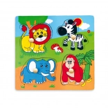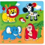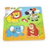 Discover the first puzzle for little ones: a wooden safari animal peg puzzle with practical knobs. It supports fine motor skills, hand–eye coordination, and shape and animal recognition. Its colorful design and safe finish delight children from 12 months.