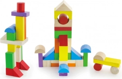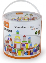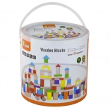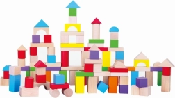 Discover timeless fun with wooden blocks that let children build towers, bridges, and their own little town. The set contains 100 pieces in vivid colors and shapes, sized from 2.5 to 7.5 cm. A practical bucket with a handle makes storage and transport easy, so the blocks are always at hand.