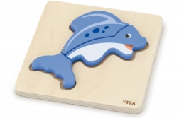 Discover the adorable wooden insert puzzle with a dolphin motif from VIGA, ideal for children from 18 months. It supports fine motor skills, logical thinking and shape and color perception. Quality wooden construction and safe paints ensure safe and fun play for the little ones.
